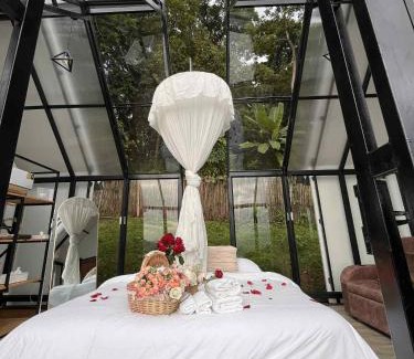 30 miles from Queen Sirikit Botanic Garden in Ban Mae Ta Man, Dandelion Cabin provides accommodations with access to a hot tub. The air-conditioned accommodation is 19 miles from Elephant Nature Park, and guests can benefit from on-site private parking and complimentary Wifi. Guests can use a terrace. Towels and bed linen are provided in the campground. The property has an outdoor dining area. The campground offers an à la carte or Asian breakfast. Chiang Mai Airport is 36 miles away.