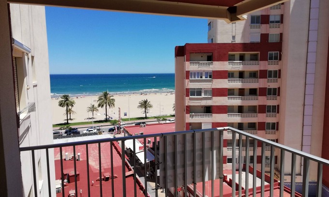 No se aceptan grupos de gente joven (menores de 30 años). Este apartamento NO admite mascotas.Fantástico apartamento en primera línea de la Playa de Gandía con fabulosas vistas a la playa y al paseo marítimo Neptuno, situado en uno de los complejos más concurridos y con más servicios de esta Playa. El apartamento está situado en quinta planta, cuenta con dos dormitorios dobles (ambos con ventiladores de techo), un baño completo reformado con plato de ducha, gran cocina recientemente reformada con lavavajillas, un amplio salón-comedor con salida la terraza, esta de orientación Sur, con vistas a la playa y a la montaña. Tiene lavadora, TV y microondas. Incluye plaza garaje y servicio WIFI.El apartamento está equipado con ropa de cama y toallas, y todo lo necesario para cocinar y poner mesa. No es un estándar la olla a presión, la batidora ni la tostadora eléctrica; por ello si alguna de estas les es imprescindible no olviden traerla! Capacidad 4/5 personas, no se admiten grupos de gente joven. A la recogida de llaves deberán depositar una fianza de 150 € para cubrir posibles desperfectos o perdida de llaves. Está se devolverá a la devolución de las llaves trás la revisión del apartamento. La playa de Gandia ofrece servicio de socorrismo en temporada alta, al igual que gran variedad de chiringuitos de playa, restaurantes, heladerías, supermercados, prensa, farmacia, y otros muchos servicios.Incluye cambio ropa de cama quincenal.