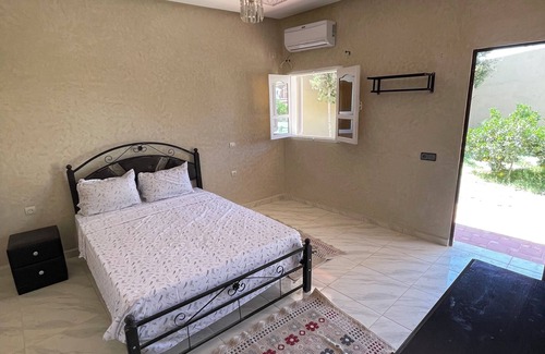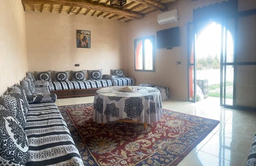 Just ** 3km from Taroudant**, Dar Mona offers traditional Moroccan charm with **8 elegant rooms** for **16 guests**, each equipped with **AC, TV, and blazing-fast WiFi**. Relax by the **poolside**, enjoy **delicious meals and drinks**at your request,or indulge in our **traditional Moroccan Hammam**and spacious areas for **meetings , birthdays, and more**, it's the perfect retreat for relaxation and celebration. The price is per room. Breakfast included