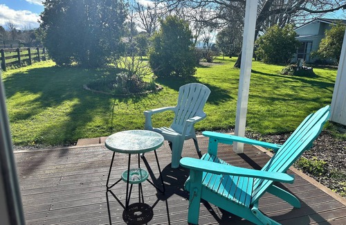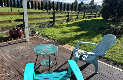 We are 15 mins walking to the cafes and shops. The cottage is located next to our barns on a small lifestyle block. There is one queen bed in the bedroom and a double sofa bed in the lounge. The kitchen is separate from both bedroom and lounge. There is a veranda outside the front of the cottage and a deck at the side off the lounge.
