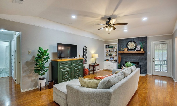 Transport your family to a place where their daily routines are displaced only by the delight of a new location. Spend evenings enjoying the fire pit and outdoor dining area of this 3-bedroom, 2-bath vacation rental, where you can savor meals al fresco and unwind under the stars. Fill in the day with top activities like fishing in Lake Waxahachie, sightseeing historic downtown, and attending the annual Scarborough Renaissance Festival — all a short drive away.