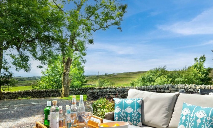 - Outside: Secure large patio area, garden furniture, garden seating, sea and countryside views, throw away BBQ.