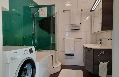Situated in Velden am Wörthersee and only 300 metres from Strandbad Velden, Das Karawankenplatz! Haus der Geschenke-Carinthia features accommodation with lake views, free WiFi and free private parking. The property features city views and is 15 km from Hornstein Castle and 17 km from Schrottenburg. The apartment has 2 bedrooms, a flat-screen TV with satellite channels, an equipped kitchen with a dishwasher and a microwave, a washing machine, and 1 bathroom with a shower. Towels and bed linen are available. The apartment provides a terrace. Fortress Landskron is 18 km from Das Karawankenplatz! Haus der Geschenke-Carinthia, while Hallegg Castle is 20 km from the property. The nearest airport is Klagenfurt Airport, 27 km from the accommodation.