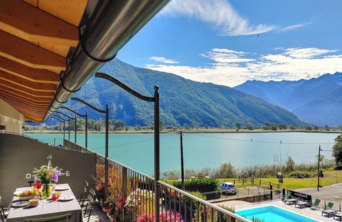 The Dascio holiday residence with a total of 8 holiday flats is located in the neighbourhood of the small lakeside village of Dascio on Lake Mezzola, in the largest nature reserve in Lombardy, Pian di Spagna, the foothills of Lake Como.A holiday oasis directly on the lakeshore with panoramic views of the lake and the surrounding mountains. The lakeside road leads to the village of Dascio with two well-known fish restaurants, about 700 m after that the road ends. Your