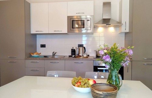 The Silence holiday flat impresses with its bright, friendly furnishing style, which combines high-quality furniture with modern Lombard flair. The floors are laid with stylish wood design tiles.