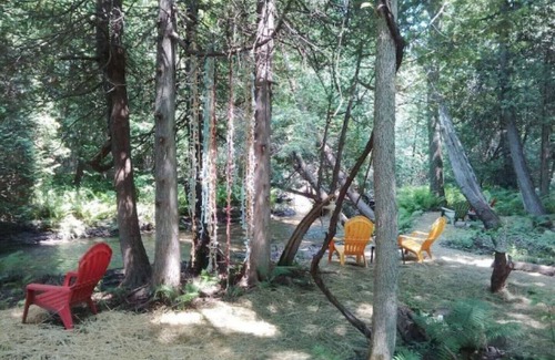 Leave your stress behind as you retreat to this tranquil oasis and stroll the scenic 5 acres of enchanted forest and flowing river. Relax and wander the property taking in the views from hammocks, chairs, logs or...just retire to your private and cozy guesthouse in the woods!