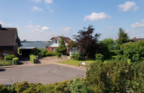 A lockable shed offers our holiday guests for the duration of their vacation enough space for bikes, a barbecue or sports equipment. In front of the house we have reserved for our holiday guests two exclusive parking spaces as well as a covered carport, which are at your free disposal. Your four-legged friend is also a welcome holiday guest. The WLAN is available to our holiday guests in our holiday home in Kappeln free of charge. On the beautiful riverside path is our pretty wooden house in the quiet Kappelner district "Kopperby", just 100 meters from the Schlei and offers from the loggia a wonderful view of the water. The nearest children's playground is only 200m away and so easy to reach. Kappeln offers a marvelous, maritime flair: watch the passing sailing ships from the bascule bridge, take a boat trip on the paddle steamer "Schlei Princess" or hop on the Angelner steam train and explore the fishing region in the traditional way. The city center has many shops, cafes, restaurants and a smokehouse.