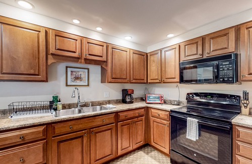 The perfect home base for a couple's retreat or small family vacation, this one-bedroom rental offers easy convenience to town and comes well-furnished for contemporary comfort. Strong natural lighting floods the space while home essentials include a full kitchen, free WiFi, and a private washer and dryer. At-home meals can be enjoyed at a breakfast bar with seating for three or adjacent dining table set for four. After the day's adventures, unwind in the living area with shows and movies on the smart TV. The bedroom also comes equipped with a smart TV for added entertainment.