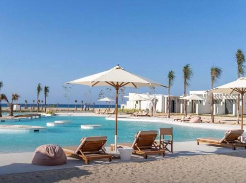 This vacation home provides air-conditioned accommodations with a balcony and free Wifi. There's parking on-site, and the property offers an electric vehicle charging station. Providing a terrace and sea views, the vacation home includes 1 bedroom, a living room, satellite flat-screen TV, an equipped kitchen, and 1 bathroom with a bidet and a shower. The property offers lake views. The nearest airport is El Alamein International Airport, 20 miles from Dbay Sea view & lagoon cabin.