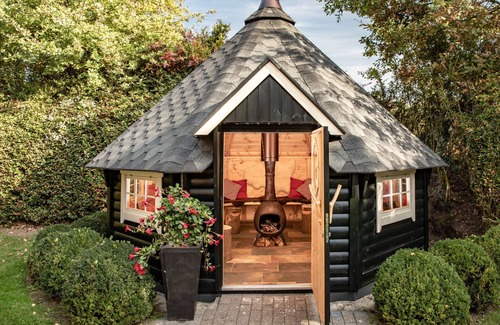 "De Regenboog", 9-room house 250 m2. Comfortable furnishings: living/dining room with dining table and flat screen. Exit to the terrace. Kitchen (dishwasher, Gas stove, 4 gas rings, kettle, freezer, electric coffee machine, combination microwave). 2 sep. WC's. Heating. Upper floor: with sloping ceilings, 4 rooms, each room with 1 double bed. 4 rooms, each room with 2 beds. 2 showers/WC. Terrace, garden. Terrace furniture, box-room. Facilities: washing machine, dryer, children's high chair, baby cot. Internet (WiFi, free). Please note: non-smokers only. The accommodation consists of two adjacent houses. In the garden there is a Finnish Kota and a hot tub (extra).