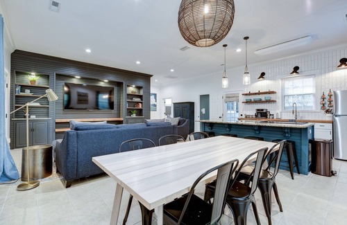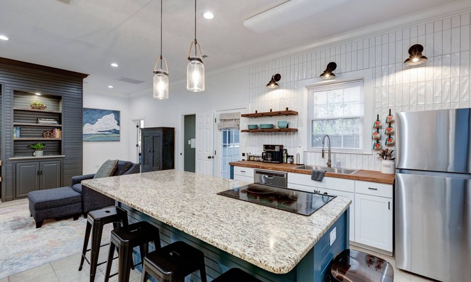 Spacious and Modern! This Wake Forest cottage features 2 bedrooms and 2 bathrooms, perfect for game weekends and group gatherings. You will love the open living space that comfortably accommodates family activities. The home has a large kitchen island that looks over the huge living room TV and dining area. There is a game area in the garage as well as an outdoor patio just off the kitchen and a huge backyard for yard games and relaxing fun. Enjoy a getaway to Winston Salem here.