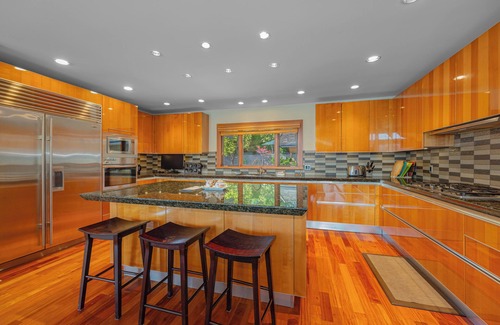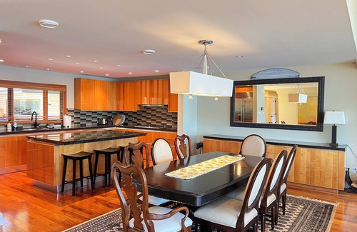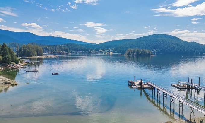 Welcome to your peaceful Deep Cove waterfront retreat! This spacious 4-bedroom, 3.5-bath home offers stunning ocean and mountain views just 25 minutes from downtown Vancouver. Enjoy direct water access, complimentary kayaks, two large patios, a steam bath, and a fully equipped kitchen. Set on a private, gated half-acre with terraced gardens, close to shops, trails, beaches, and Grouse Mountain. Perfect for families or groups seeking nature, comfort, and relaxation.