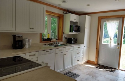 This comfortable guest house has full kitchen facilities. We are close to the Blue Mountain and Beaver Valley skiing areas as well as close to the Bruce Trail. The sleeping area is one big bedroom with 2 Queen, 1 double and a single bed. The full bathroom also has laundry facilities. $195 per night, 15% discount for a 7 night stay. Come and enjoy the quiet beauty of Georgian Bay and Deer Path!