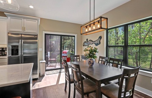 Welcome to Deerpath Hill- a new construction, 3 bed/2.5 bath gem just an easy walk from the pristine Western shore of Geneva Lake. Located in the peaceful Indian Hills association, the neighborhood delivers a quintessential lake cottage feel and is home to many part-time residents who flee to our beautiful area during the summers. Catch a morning hike and admire the historic mansions on the scenic, 21-mile shore path and easily take off for a day of shopping, wining and dining in downtown Lake Geneva. This home has been laid out with entertainment in mind, featuring an open floor plan, a light and bright kitchen and a back deck overlooking the nature that abounds. Once the trees fill in for the season, you find yourself in your very own slice of nature and enjoy a wonderful sense of seclusion from the other homes in the area. While the first floor is ideal for congregating after a day by the water, the upper level provides comfortable accommodations to begin and end your vacation days. The master features a king and a beautiful en-suite bath with a large shower and double sinks. The second bedroom houses a queen with a large closet, while a third bunk room offers a perfect sleeping option for the kids. All bedrooms are equipped with a wall-mounted smart TV. An additional full bath can also be found on the upper level along with a half bath off the living room, only adding to the convenience of this upscale Fontana getaway.