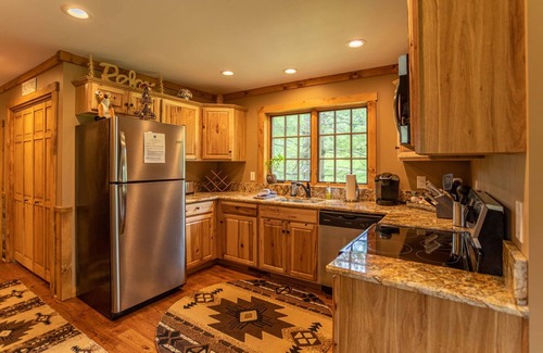 Inside, you will find a king size bed in the master bedroom. The kitchen is fully stocked with everything from Frigidaire appliances, electric range, a coffee pot, toaster and plenty of utensils. There is also a dining area large enough for 6 people! There are flat screen TV's in the bedroom and living room that are Roku compatible! Grab a glass of wine and head outside to sit by the fire pit and enjoy all that the beautiful North Carolina Mountains has to offer.