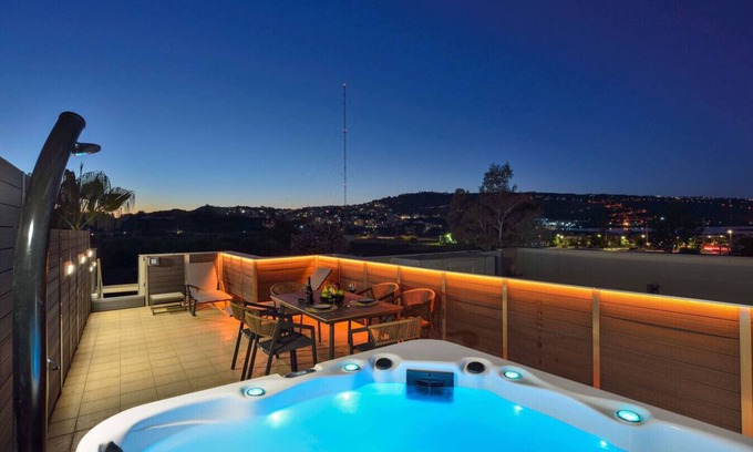 The rooftop terrace is the ultimate highlight, boasting a private jacuzzi with panoramic views—an ideal spot to enjoy the Cretan sun or stargaze in the evening.