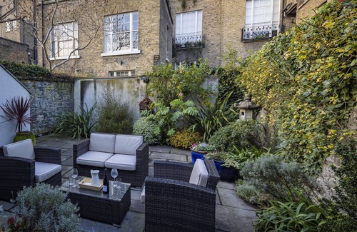 Outside, a private outdoor space beckons, a rare luxury in a city setting, while the surrounding Georgian architecture infuses every moment with a sense of history and charm.