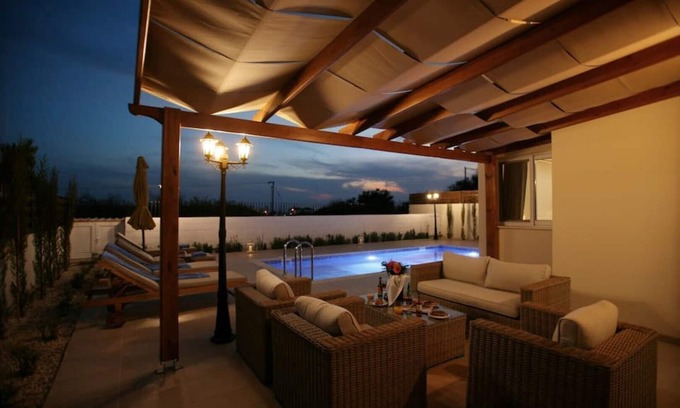 The minute you walk in Villa Carmel you are enchanted by the feeling of luxury and its warm ambience with a family atmosphere. Lovely and cozy, it is set back from the hustle and bustle of Ayia Napa but yet only a short walk to Nissi Avenue with its many bars, restaurants, and nightlife. The Number One beach in Europe, famous Nissi Beach is a mere 800m, less than a 10-minute walk away. It is the perfect choice for those looking for a relaxing break, close to all beaches and amenities and is certainly more than equipped for a luxurious holiday at a great location, walking distance to some of the best beaches in the Med, as well as to all amenities.