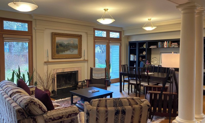Now available for 30-day (and +) rentals only, our "Ithaca Home & Garden" is a gracious, classically-detailed home with wonderful spaces to celebrate special occasions both indoors and out! The unit is wheel-chair manageable with spacious rooms, hallway and wheel-in shower. High speed internet offers 132 Mbps. Ask us about using the lovely garden to hold a small outdoor BBQ reception or a fun marshmallow roast at the fire pit.