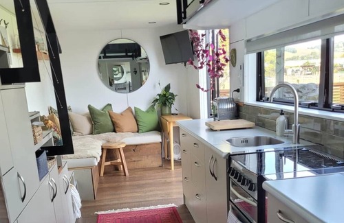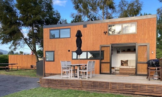 This memorable Tiny Home is anything but ordinary. Sited on a private paddock with private access in Mosgiel just 20 mins from central CBD Dunedin, this home is perfect for a unique getaway and to experience Tiny Home living at its premium. Ideal for a couple, TINY has a full functioning bathroom and kitchen and outdoor deck with bbq within a rural setting TINY is a double storey home, and requires able body persons to access the bedrooms. If you are taller than 5 foot you need to duck your head in the bedrooms only. Downstairs is very spacious for a TINY home and has a full size kitchen, shower & toilet room. There is a separate access with a sign marked TINY as your own entrance which is fully private from our home. Plenty of parking with 2 steps to access the deck. We live next door to the property and are available to assist with anything you need We are a 20 minute flat walk to the local village of Mosgiel. This is a community that hosts supermarkets/chemists/bottle stores/cafes/library and gift stores and any other essential service you need. It is also a 15 minute walk to the Invermay Research Campus Mosgiel is flat and has ample parking within the community on the Main Street The Tiny House isn't suitable for small children due to the stairs not being gated off and the property not securely fenced.
