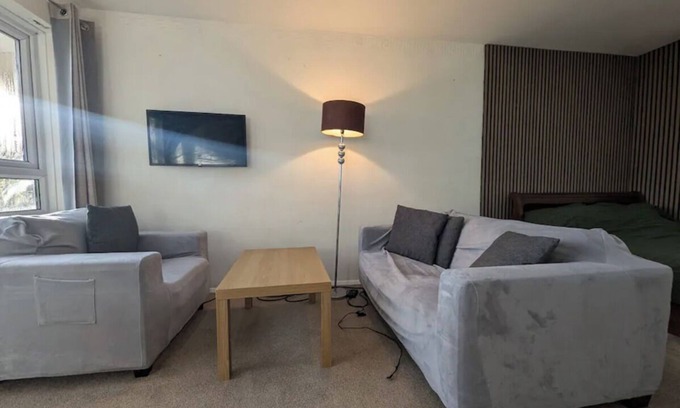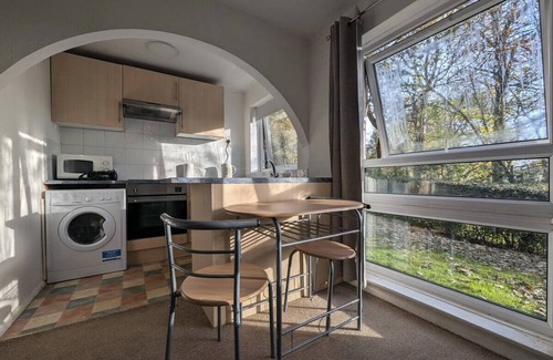This flat is perfect for short to medium-term stays, offering a fully-equipped kitchen and more spacious living than a typical hotel room, all within a peaceful setting.