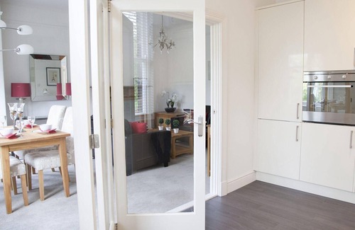The living / dining area is a good size and has been finished and styled to an excellent standard with stunning large bay window overlooking the famous Valley Gardens. The kitchen is separated from the living area by a sliding glazed screen, which when opened gives a real sense of space and creates an open plan feel. When cooking, the screen can be closed if preferred.