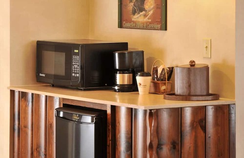 Immerse yourself in history at our quaint hotel next to the Pony Express Museum and River Bluff Trail Park. Relish the Old West vibe, themed suites with rich wood furnishings, and modern comforts like a fitness room, pool, bar, and complimentary breakfast. Perfectly situated for exploring local attractions and trails, our warm service, delectable American cuisine, and rustic charm offer a timeless escape. Experience a unique adventure at our inviting woodland haven.