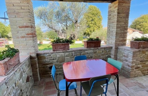 swimming pool and overlooking the Marche hills. The apartment has a