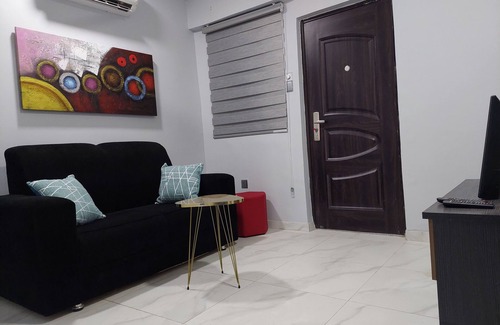 A fully furnished 1-bedroom ground floor apartment, offering the warmth and comforts of a home in a Serene environment with free car park in gated community with 24/7 security.