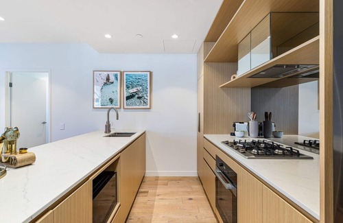 The apartment features all the comforts of home, including a fully equipped kitchen where you can whip up delicious meals using local ingredients and floor-to-ceiling stacker doors to open up the balcony area to become an extension of the apartment. The cozy living area is the perfect spot to unwind after a day of exploration, with plush seating and a smart TV for movie nights.