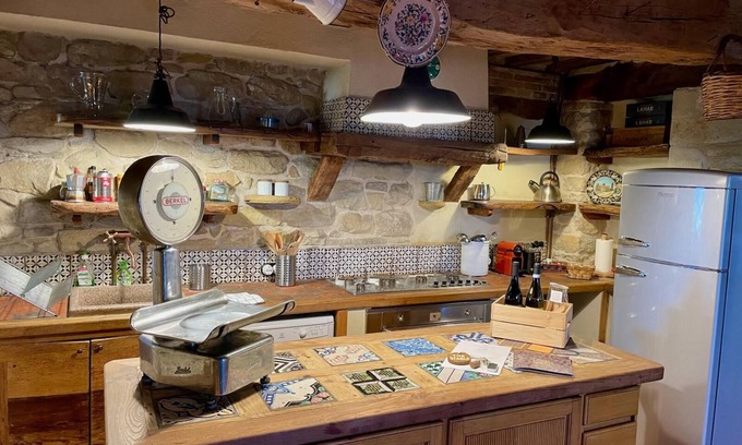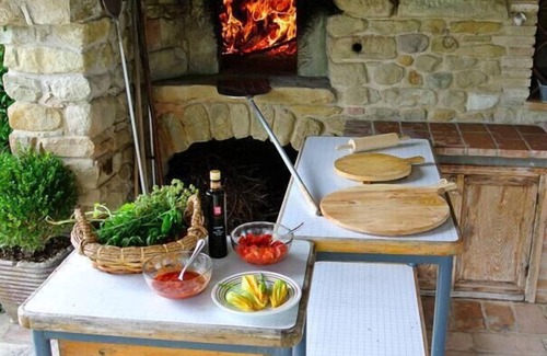 The villa has an internal surface of 150 square meters, a large private garden equipped with sun loungers and with 2 separate patio areas ideal for outdoor dining both equipped with two very original wooden dining tables, a barbecue and a fantastic wood oven perfect for cooking pizza. Inside the villa there is a large well equipped kitchen with dishwasher, oven, hob and a large fridge, a separate dining room with an old cast iron stove, a large living room with fireplace and 2 large sofas and armchairs with TV corner, 2 large bedrooms with 2 bathrooms inside the room both with shower. Inside ceilings with exposed wooden beams, terracotta floors, with underfloor heating, vintage furniture add a lot of personality to the house. The villa is ideal for 5 people for both short and long stays.