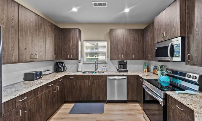 Food & DrinkTea/Coffee makerInternetInternet facilities, Wireless internetMedia & TechnologyTVGeneralAir conditioningBathroomFree toiletries, Private Bathroom, HairdryerKitchenMicrowave, Dishwasher, Dryer, Kitchen, Toaster, Refrigerator, Washing machineLiving AreaSitting areaBedroomLinens |