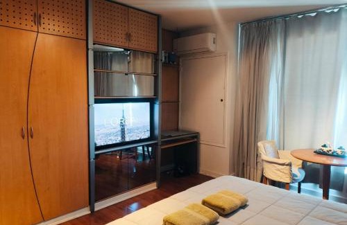 Food & DrinkTea/Coffee maker, Chocolate/Cookies, FruitBathroomBathtub or shower, Shower, Toilet, Toilet paper, Towels, Free toiletries, Private bathroomMedia & TechnologyTV, Cable channels, Streaming service (like Netflix), Flat-screen TV, Mobile hotspot deviceGeneralHypoallergenic, Soundproof, Heating, Trash cans, Private entrance, Air conditioning, Key access, Carbon monoxide detectorKitchenElectric kettle, Coffee machine, Kitchenware, Kitchenette, Dining table, Wine glasses, Microwave, Refrigerator, Cleaning products, KitchenLiving AreaSofa, Sitting area, Dining areaViewView, City viewBedroomWardrobe or closet, LinensBuilding CharacteristicsPrivate apartment in buildingRoom AmenitiesSocket near the bed, Adapter, Hypoallergenic pillowAccessibilityAccessible by elevator |