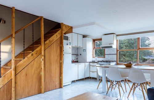 This accommodation in Villa La Angostura includes Wi-Fi, heater, and Smart TV with streaming service. Its functional and warm design makes it the perfect place to enjoy comfort after exploring the natural surroundings.