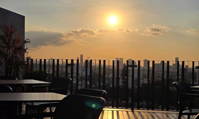 Subiendo al noveno piso encontrarás un Rooftop con una espectacular vista a la ciudad.