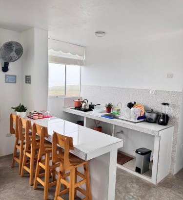 Providing a garden, Departamento en Chancay con Vista al Mar y cerca al Megapuerto provides accommodations in Chancayllo. This property offers access to a terrace, free private parking, and free Wifi. The apartment is composed of 2 bedrooms, a living room, a fully equipped kitchenette, and 1 bathroom. A flat-screen TV is provided. The accommodation is non-smoking. An à la carte, continental, or American breakfast is available at the property. Jorge Chavez International Airport is 43 miles away.