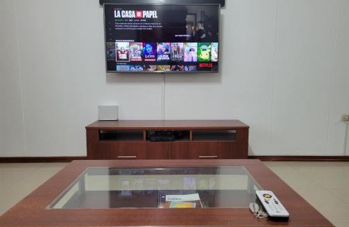 Offering a garden, Departamento Los Balcones features accommodations in Cajamarca. This property offers access to a patio, free private parking, and free Wifi. The accommodation offers luggage storage space, a tour desk, and currency exchange for guests. Providing a balcony and garden views, the spacious apartment includes 3 bedrooms, a living room, flat-screen TV, an equipped kitchen, and 2 bathrooms with a walk-in shower and a bath. Towels and bed linen are provided in the apartment. For added privacy, the accommodation has a private entrance and is protected by full-day security. For guests with children, the apartment provides an indoor play area and an outdoor play equipment. Mayor General FAP Armando Revoredo Iglesias Airport is 1.2 miles away.
