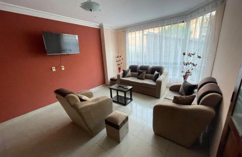 Departamentos Centricos is located in Sucre, just a 4-minute walk from Surapata Park and 0.4 miles from Bolivar Park. Both free Wifi and private parking are accessible at the apartment free of charge. The spacious apartment is composed of 1 bedroom, a living room, a fully equipped kitchen, and 2 bathrooms. A flat-screen TV is available. The accommodation is non-smoking. The nearest airport is Sucre Alcantari International Airport, 20 miles from Departamentos Centricos.