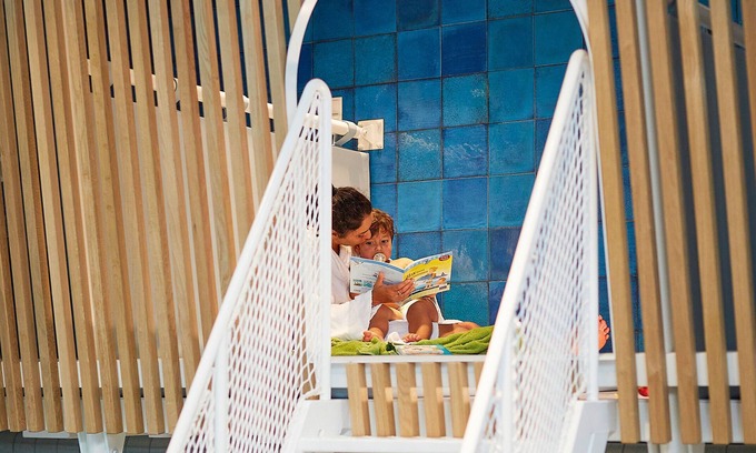 An indoor pool and a children's pool are on site. Other recreational amenities include a waterslide and a sauna.
