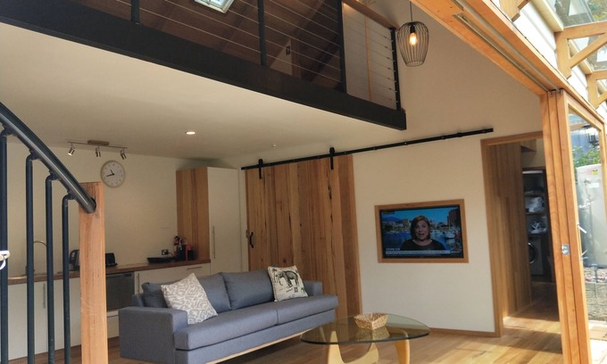Newly renovated free-standing apartment featuring gorgeous Tassie Oak flooring, walls & ceilings & lovely sunny lawn with views over the natural beauty of Natone Hill! Derwent River Apartment is less than a minute's walk to the edge of the River Derwent with it's incredible views over Mount Wellington/Kunanyi & the wonderful-to-walk or ride Clarence Foreshore Trail! Lindisfarne Village is an easy walk for shopping & cafes, it's just 10min to Hobart CBD or MONA & 15min to Hobart Airport! This apartment has a King bed in the downstairs master bedroom, WiFi internet, SMART 4K TV with Netflix, Heatpump and more. The cozy upstairs mezzanine room is configured as 2 singles or a King bed on request.