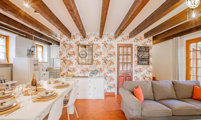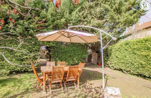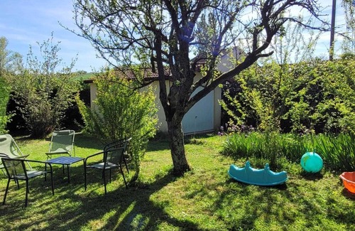 Fanny & Jean-Michel, open the doors of a charming authentic traditional Burgundian building from the 19th century, steeped in history (former "chai" once linked to a wine estate), located on the first heights of the city, in a residential area. A renowned gastronomic stopover, nestled on the banks of the Saône in the hollow of a bucolic hilly wine-growing countryside (successions of wooded meadows, rivers, beautiful wild forests & hillsides of vineyards), this charming city with exotic colorful facades giving it an unusual Mediterranean charm, dotted with gentle pedestrian streets, has all the amenities, an inestimable heritage, particularly Romanesque (Saint-Philibert Abbey from the 10th and 11th centuries, Hôtel Dieu, Romanesque churches from the 12th century, Gothic houses, buildings from the Middle Ages to the 18th century, private mansions, Roman remains, etc.) & a unique level of sports & leisure facilities. Spacious, very comfortable cottage. Warm, "country chic" feel. Room nestled under the roof in "cabin" mode offering an unusual "mini hideaway" nestled in the loft! Cozy & ultra-snug. Lots of charm. Pleasant, intimate enclosed garden with lawn, flowers & trees (cherry tree, plum tree / picking possible) with a garden lounge area. Access to the entire property housing an outdoor spa (5 places / open all year), swing & ping-pong table. Composition: Gite adjoining the owners' accommodation housing 3 guest rooms (total independence). Wifi (fiber). PAC heating. Air conditioning. Ground floor: living room-lounge-kitchen, bathroom (shower / WC), veranda-relaxation area. 1st floor: 2 bedrooms (double bed 160x200cm in each). 2nd fl. : 1 bedroom (3 single beds 90x190cm + child's bed 70x140cm), with private bathroom (shower/WC). Enclosed garden (400m²) + courtyard + garage (1 space/bike storage) + private parking. Shared grounds with sheltered outdoor spa (access fee), table tennis & swing. Supermarket 1.5 km. All amenities 2.5 km.