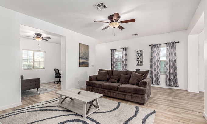 Escape to the West Valley in Buckeye, Arizona, at our charming 2-bedroom, 2-bath home for a memorable monthly stay. Nestled in the serene Sonoran Desert, this cozy retreat offers the perfect blend of modern comfort and desert tranquility, ideal for individuals, families, or couples seeking a relaxing getaway.