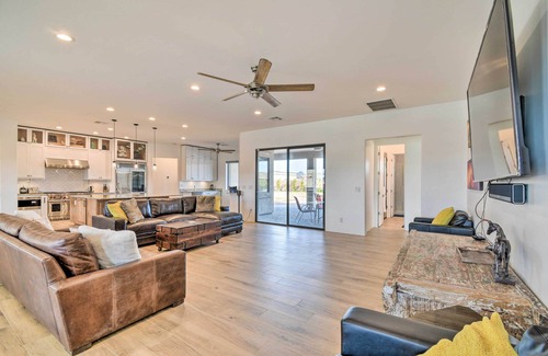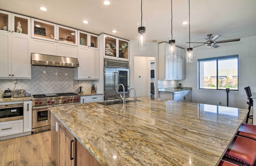 Spend fun-filled days outdoors, then retreat into this inviting Phoenix vacation rental for some R 'n R. Highlighted by 3,011 square feet of chic living space, a fully equipped kitchen, 2 Smart TVs, an expansive outdoor area with a gas grill, and plenty more, this peaceful 4-bedroom, 3-bathroom house is great for mid-sized families and groups. Stargaze in the backyard with a cocktail in hand, go boating or fishing at Lake Pleasant, or get some retail therapy at the Outlets at Anthem. Book now!