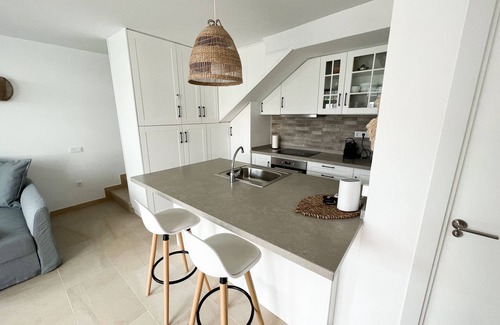 This beautiful vacation cottage was just finished renovation in January 2023. It has 2 bedrooms with private Smart TV and access to the balcony. In the open living area with kitchen a large sofa invites you to stay. For 5 people, this can be extended to a bed. The large kitchen is fully equipped. Refrigerator / freezer, a Nespresso coffee machine, an oven and a washing machine with dryer function are among other things available.