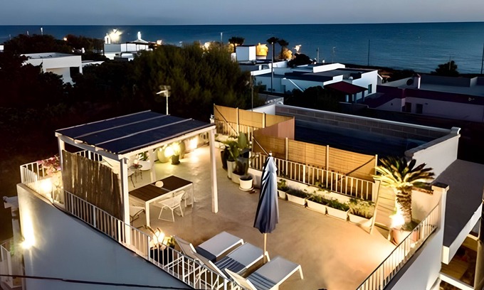 The house is located in Capilungo, just a few steps from the sea, in a strategic position between Gallipoli and Santa Maria di Leuca. It is a comfortable and welcoming residence, with carefully designed interiors, ideal for those who wish to rediscover the pleasure of slow living. You can have lunch outdoors on the veranda or enjoy a drink on the rooftop terrace at sunset, taking in the sea breeze. The coastline features low, comfortable, and easily accessible rocks. The area and the village are well served by essential services, restaurants, a pharmacy, and shops. Parking is always available on a side street.