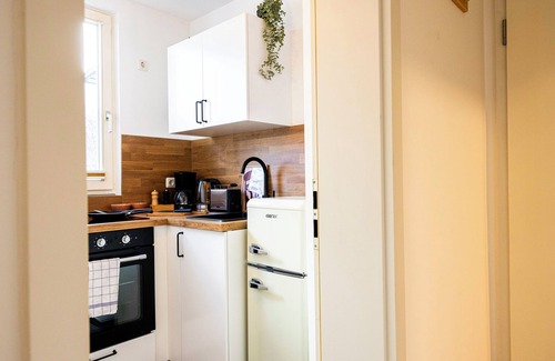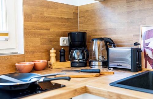 The apartment features a comfortable double bed and an additional couch that invites you to relax. The fully equipped kitchen offers everything you need for cooking – from dishes and pots to a coffee machine. Wi-Fi, a TV, and fresh bed linens and towels are also provided.