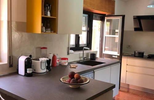 As you settle into this 6-bedroom rental, you'll find a living room, a BBQ grill, a fireplace, and air conditioning. Bathroom amenities include a hair dryer, a bidet, and towels. The kitchen is equipped with an oven, a stovetop, and a refrigerator, as well as a coffee maker, an electric kettle, and a microwave. And you won't have to pack extra clothes, because you'll also have a washing machine.