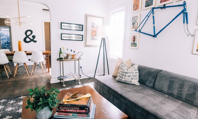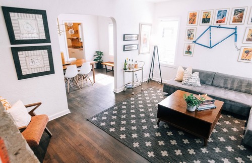 Make memories in this designer remodeled two bedroom unit in a historic 1930's duplex, located minutes from Downtown Phoenix. Original plank wood floors, lots of preserved original details, coupled with modern amenities like a remodeled kitchen and bathroom. The upstairs is a large loft with a king bed. Downstairs bedroom has a queen bed. The couch in the living room is two halves that are twin sized, if you need the extra space. The space is stocked with everything you may need.