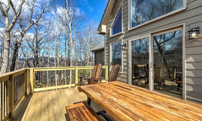 OUTDOOR LIVING: Deck, charcoal grill (BYOC), fire pit (BYOW), picnic table, Adirondack chairs, mountain view