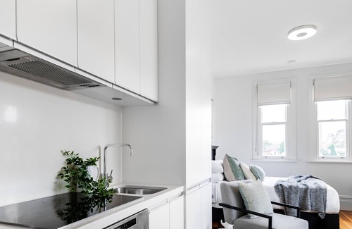 Sophisticated and simple, this studio in the inner-city suburb of Glebe is surprisingly spacious, with outdoor space, district views and a contemporary fit-out. It also offers a chance to take advantage Sydney's best bits, thanks to its proximity to the city, the harbour, the renowned Tramsheds restaurant precinct and the cosmopolitan Inner West. There's something for everyone around here, whether you're into architecture, dog spotting, fine dining, shopping or just relaxing on the balcony.